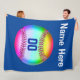 Cool Multicolored Softball Fleece Blanket PERSONALIZED with her NAME or Text and her JERSEY NUMBER or MONOGRAM typed into text boxes beneath "Edit this design template". Click "More" to see Both Text Boxes. For Softball Team Gifts, this blanket is available in the Small 30 x 40 inch and also the Medium 50 x 60 inch. Shown is the Largest Softball Blanket, 60 x 80 inch to keep you warm at the game. Great Softball Room Decor for Girls. Wonderful Softball Christmas Blanket. CALL Linda to make design and or COLOR Changes: 239-949-9090