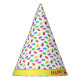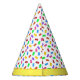 Beautiful multicolored sweet bears and yellow band with personalised text on white Party Hat. Ideal for all kids events.