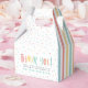 Multicolored thank you spot and stripe favour box. Part of a fun, bright modern party collection.