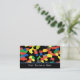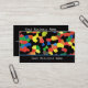 An eye-catching business card for many types of business, with blocks of colour in red, yellow, turquoise, green and black. Fully and easily customisable.
