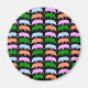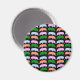 This magnet features a series of different coloured cartoon style pigs. The hogs are in alternating lines of pink and blue and green and orange. The background is black.