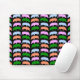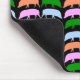 This mousepad features a series of different coloured cartoon style pigs. The hogs are in alternating lines of pink and blue and green and orange. The background is black.