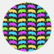 This sticker features a series of different coloured cartoon style pigs. The hogs are in alternating lines of green and yellow and purple and blue. The background is black.
