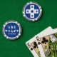 Give the guests, bridesmaids, groomsmen, or anyone else attending or helping with your geeky wedding or special event a fun treat with these customisable poker chips. One side of the poker chip features a white directional pad, or D-pad, on a rich sapphire blue background. The other side has a sample set of initials and date separated by a pattern of video game related icons, including a D-pad, 8-bit heart, joystick, and computer mouse. The sample text can be customised with your own details or a special message of your choice to create a unique and personal token to commemorate your big day. This design will match any product from the Multiplayer Mode in Blue line so that you can make your gaming themed wedding or special event as coordinated as you like.