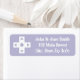 A pastel lavender return address label is decorated with a white D-pad on the left and sample text on the right for customising to make it your own.