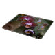 The elegance of the orchid flower is portrayed with multiple branches of exotic velvety deep purple blossoms. Shades of maroon, green, terra cotta, purple with hints of white lend a sophistication to this floral design cutting board.