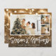 Small 4.5" x 5.6" semi-gloss 110 lb. paper holiday photo cards feature your three favourite photos, your names and Season's Greetings in chic lettering are printed on a gold and bronze glitter pattern. Be sure to double-check your order before adding it to your cart as what you see on the screen is what will be printed. The Live Design Service can help you with your design layout if needed.