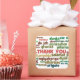The size is perfect and the design has a softness with the beautiful flowers around the edges. The black lettering on the white background is sharp. It stands out beautifully. I love the Mixture of font styles as it catches the eye.