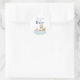 This custom sticker label features a North Pole theme that is perfect for a soon-to-be winter baby shower, child's birthday, or other seasonal celebration. An illustrated image is pictured at the bottom of a seal mum and her pup floating on a sheet of ice in the cold ocean.