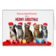 A funny and cute Christmas card with 5 cats sitting in a row wearing Santa hats. The words Meowy Christmas are above the cats.A Christmas card for your mum and dad,