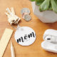 Personalised black on white button key ring for Mum in modern chic, minimalist typography style.