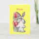 Say Happy Mother's Day with bunshine: A cartoon bunny rabbit and some pretty watercolor tulips on a bright yellow sunny background say: "Mum" Inside reads: "You are my bunshine. Happy Mother's Day!"