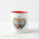This mug features a heartwarming design with two interlocking hearts. Inside each heart, the words "Mum" and "Dad" are displayed, symbolising the love and connection between parents and child. It's a perfect way to show appreciation for your family.