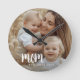 Mum Established Modern White Script Photo Round Clock