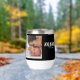 Black White Mum Established Script Black Photo Design. Replace the photo with your own of your kids and change the years to the years you became a mum. Use the edit tool if you want a second photo added instead of the one photo two times.