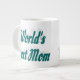 Mug with World's best Mum in 3D blue green text. Mug available in several styles and colours.