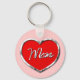 This key chain shows an engraved, chrome-ringed heart with the word "Mum" in the centre.