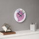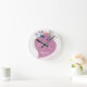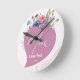 A lovely Mother's Day clock features a botanical theme with watercolor wildflowers and a large heart flush purple graphic design made up of various flowers against a watercolor background. The word "MOM" is written in white script and a graphic plush purple heart. Customise this to suit your occasion today from TheGiftsHub with matching products.