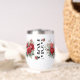 This beautiful wine tumbler features the word 'MOM' placed vertically with the words 'mum life is the best life' down the middle. An elegant bouquet of red roses flanks both sides.