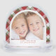 Elegant snow globe Christas gift for the best mum ever featuring "Love You Mum" and photos of her child or children in arch frames on a cheerful red, green and white seasonal plaid background. Add the year and their names in simple red lettering.