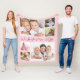 Celebrate Mum with this custom pink photo collage blanket featuring 6 photos of her children, family, pets, etc., "I Love You" or "We Love You," and family names and the year.