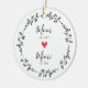 Simply perfect Christmas ornament featuring a black and white leaf line wreath drawing & heart with year est. as a Mum and year est. as a Mimi. A Wonder gift sure to be treasured for many years to come.