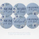 Mum of the Groom Blue Bridal Shower Pin on Button. Featuring beautiful elegant dusty slate blue watercolor flowers on a light slate blue background. Check out the other matching buttons in the collection for other important guests such as the maid of honour, bride to be, bridesmaid's and more!