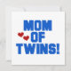 Mum of Twins blue text design with red hearts, perfect for the mum of twin boys on twin keepsake boxes, tiles, ornaments, mugs, buttons, mousepads, keychains, cards, and more!