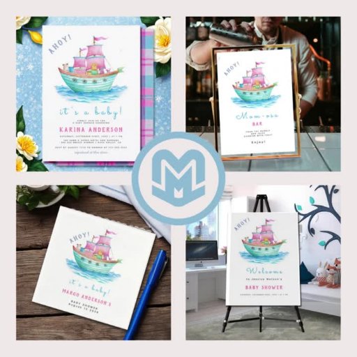 Ahoy It's A Baby Ship Animals Sailboat Baby ShowerDesigned by Max Marshall