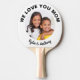 Celebrate the world's greatest mum with this fun custom photo white and black ping pong paddle. Easily personalise with a favourite photograph (crop if necessary to a square with the subjects in the middle before uploading). You can personalise "We Love You Mum" to something in similar length such as "Best Mum Ever" or "World's Greatest Mum," and whether she is called mum, mummy, mama, etc. On the bottom you can add children's names or other text.
