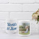 Mug with World's #1 Mum with your own photo and 3D sea blue text. Mug available in several styles and colours.
