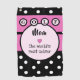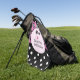 Designed in hot pink and black with stripes, polka dots, and the word 'golf'