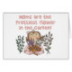 Cute mum gifts for Mother's Day or her birthday with pink flowers and a mum gardener with text that reads "Moms are the prettiest flower in the garden!".
