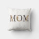 This elegant Mothers Day pillow features a typographic design with the word "MOM" that has pretty pink flowers intertwined throughout the letters. Soft neutral leaves decorate the top and bottom of the pillow for Mum. It's the perfect Mothers Day gift idea.