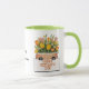 An exquisite Mother's Day coffee mug with a floral theme. It features a large bouquet of spring flowers comprising tulips, daffodils, and daisies. The wording reads "Mum, Thank You, Happy Mother's Day" on the front in modern typography. The back of the cup has space to add your message to make it more unique. Check out our store for matching products.