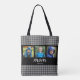 Three-photo collage layout with script “mum” text and editable year. Framed by a soft black gingham border for a classic keepsake look. Add favourite family photos to create a meaningful everyday carry piece that celebrates motherhood and memories.