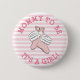 Mum to Be Baby Shower Button with Cute Girl's Shoes, pink striped.