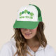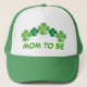 Lucky four leaf clover St Patricks Day design for the pregnant mum to be comes on a green and white trucker hat that you can personalised with a name instead of the maternity announcement if you want.