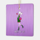 Keepsake Expectant Mother Dated Ornament. Cute pregnant expectant mother dressed to perfection for the holidays. She is wearing a ponytail, a stylish maternity dress, and high heeled boots while holding a purse accessory and a Holiday gift, all wrapped with a pretty bow. Personalise this family keepsake ornament with custom name and Christmas date on the back. Special occasion Christmas holiday ornaments from Ornament Central.