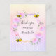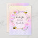 Back: Your thank you note and name, a cute happy bumble bee holding an envelope.