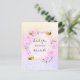 A thank you card for a summer Baby Shower. Flowers, florals on a pink, purple and golden rainbow coloured honeycomb pattern. With geometric frame. With the text: Thank You and Mum to Bee written with a modern hand lettered style script. Personalise and add your name. Black letters.