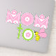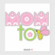 Mum to bee cute pink and green text floral Sticker. The elements of this whimsical design are the text "Mum To Bee" in a floral pink font and a yellow bee with pink wings instead of the word "be". A small gift for the mum who is expecting a baby girl.