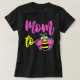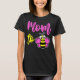 This black t-shirt features the words "Mum to Bee" playfully arranged with a cute cartoon bee. "Mum" is written in pink script, "to" in yellow script, and the bee has pink wings and yellow and black stripes. It's a sweet design likely celebrating a mother-to-be.