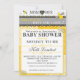 Mum to Bee Whimsical Bee Baby Shower Invitation. A grey, white and yellow coloured baby shower invitation for the Mum to Be. Features a yellow and white doily lace patterned background that holds a white banner with poster style text on it in serif and non serif fonts. the top holds a ribbon like border of grey tones with yellow polka dots to make a lace element. Stripes and flowers and bees are all a buzz on this invite as well. Very whimsical and modern, this Mum to Bee Whimsical damask & Bee Baby Shower Invitation is sure to be a hit!