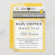 Mum to Bee Whimsical Bee Baby Shower Invitation. A grey, white and yellow coloured baby shower invitation for the Mum to Be. Features a yellow and white doily lace patterned background that holds a white banner with poster style text on it in serif and non serif fonts. the top holds a ribbon like border of grey tones with yellow polka dots to make a lace element. Stripes and flowers and bees are all a buzz on this invite as well. Very whimsical and modern, this Mum to Bee Whimsical damask & Bee Baby Shower Invitation is sure to be a hit!