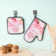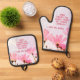 Mum Unpaid Therapist Funny Humour Floral Mother's day Mitt & Pot Holder Set. Funny and personalised Mother's day design with humourous quote ' Thanks for always being my unpaid therapist '. The text is on a blush background with pink flowers. Add your name.