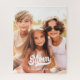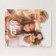 Jig saw puzzle featuring your custom photo and the text "Mum, we love you" and little white hearts.