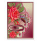 A butterfly flutters over red roses on a pink and cream scallop design with fancy tag. This design will make any mum feel she's a special person (as she is!) and is suitable for many occasions including birthday, mother's day, love you, thinking of you, best wishes, thank you etc. The word Mum is written in dark red script to match the colour scheme of the card and make the word pop from its creamy setting. The central image is a watercolor painting by Susan Alison of a beautiful red rose and a bud with fresh green leaves. A colourful butterfly tries to make up its mind where it's going to settle. The background is created from a scallop image with pearlised buttons to give a contemporary feel to the design.