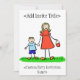 Mother and son hold hands. The woman's dress has "Mummy" and the boy's shirt has "me" on it. The mother and son figures both have blonde hair. The space above is left blank so you can personalise, as needed. This image also comes in colour as brunette or no colour options. There is also a version with the title of "Mummy's Boy".