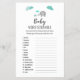 This Mummy Baby Elephant with Clouds "UK Baby Words Scramble" game is perfect for a jungle theme baby shower or sprinkle, for a boy or girl. The design features a sweet mother baby elephant duo in grey and teal with polka dot clouds and calligraphy.